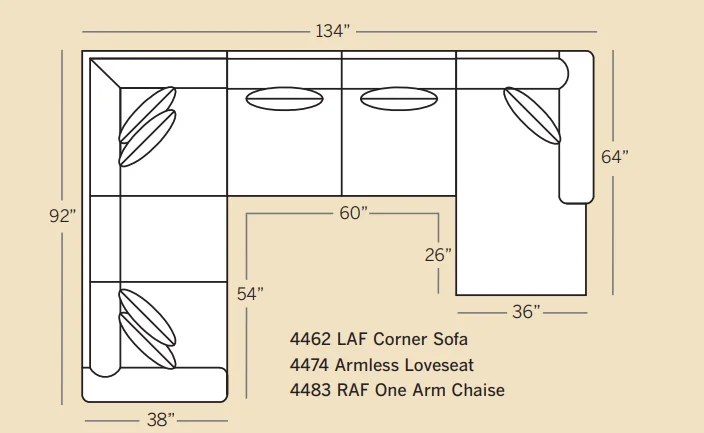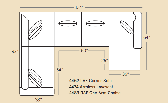 | 4474 | Armless Loveseat | 1 | 60 | 38 | 37 |