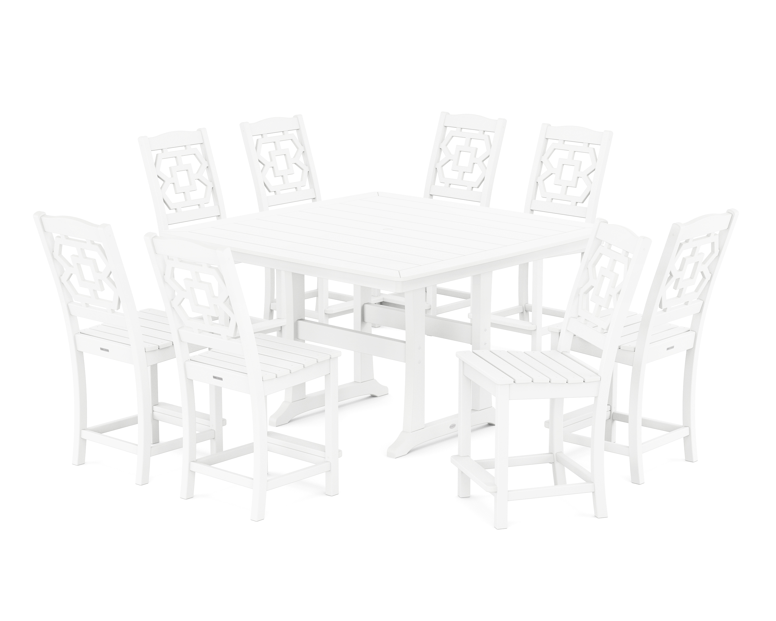 The Chinoiserie Chinoiserie 9-Piece Square Side Chair Counter Set With Trestle Legs, made by Polywood,