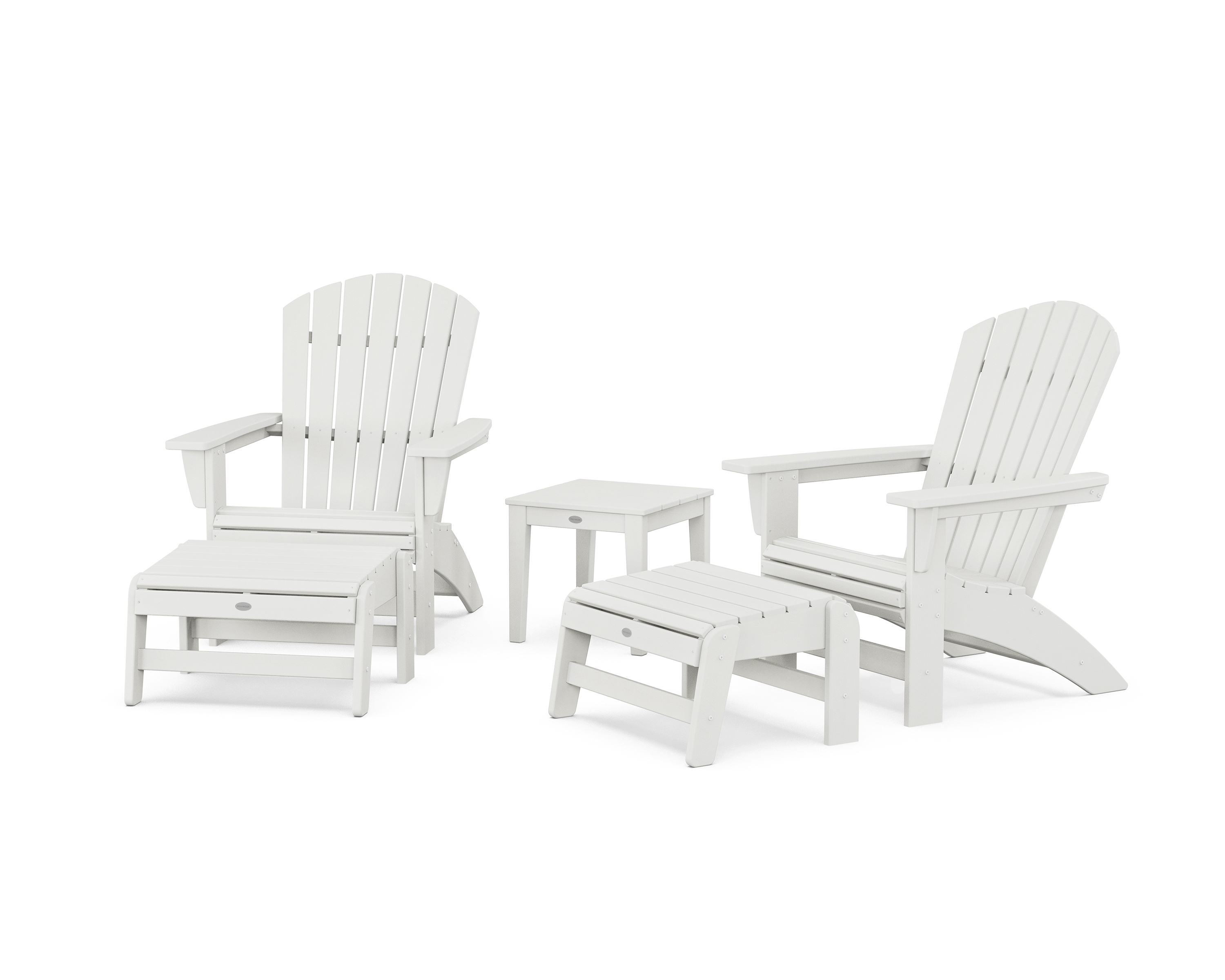 The Nautical 5-Piece Nautical Grand Adirondack Set With Ottomans And Side Table, made by Polywood,